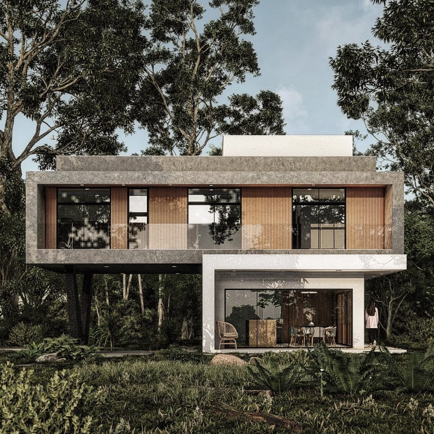 Casa Canoas Entre linhas marcantes e texturas naturais, nasce um lar que respira acolhimento. A madeira aquece, o tijolo enraíza e a luz invade cada espaço, trazendo vida e poesia à arquitetura.