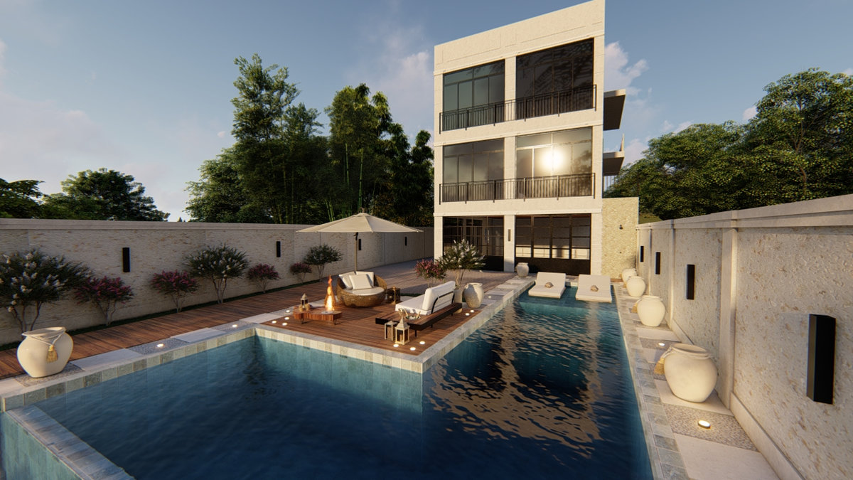 Projeto de retrofit que valoriza a volumetria original, trazendo nova vida às áreas externas. Paisagismo, muros, revestimentos e piscina foram redesenhados com uma linguagem elegante e contemporânea. Linhas retas, materiais naturais e proporções equilibradas definem um espaço clássico e atemporal.