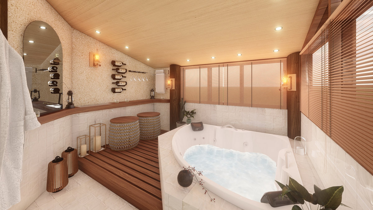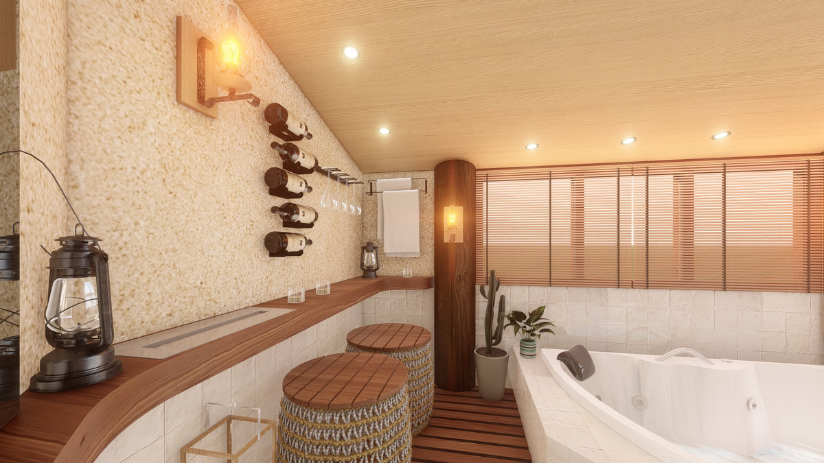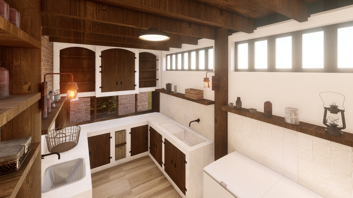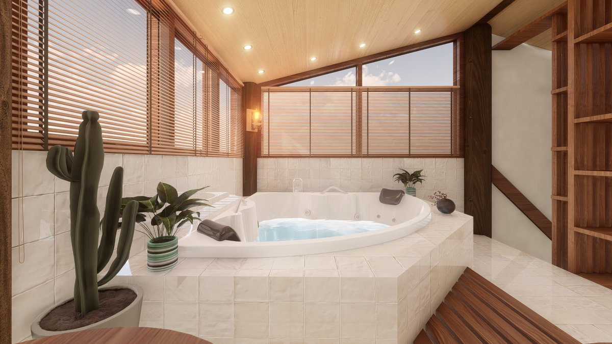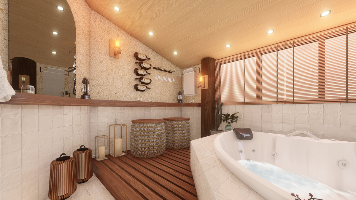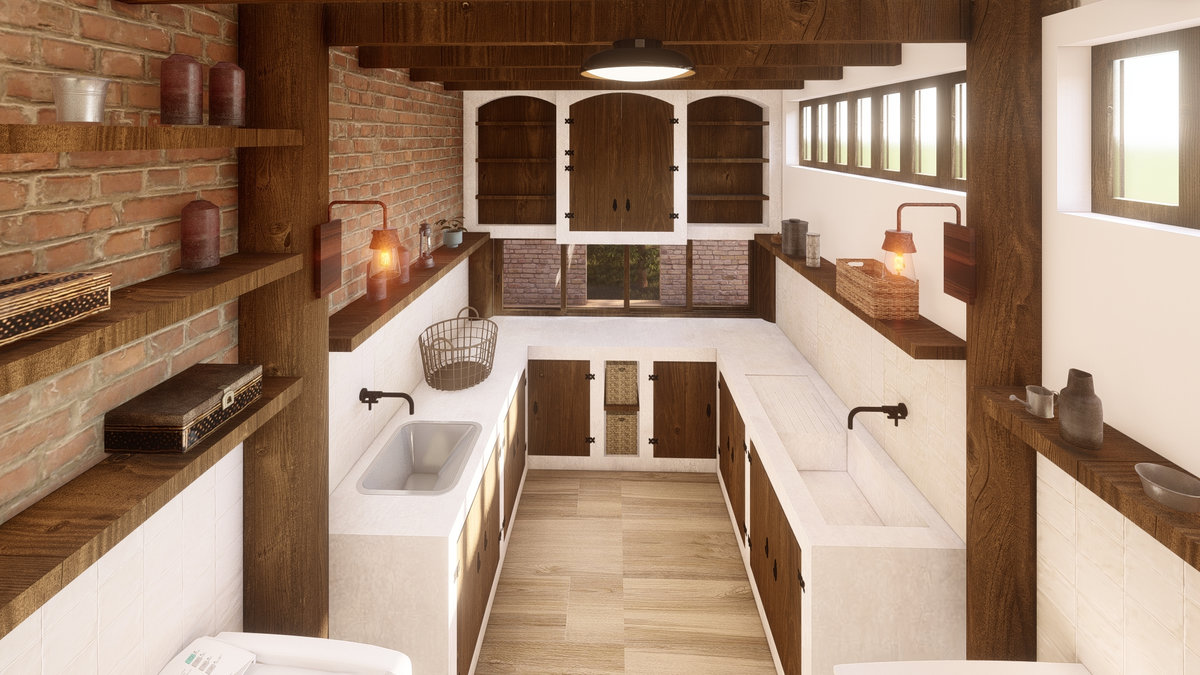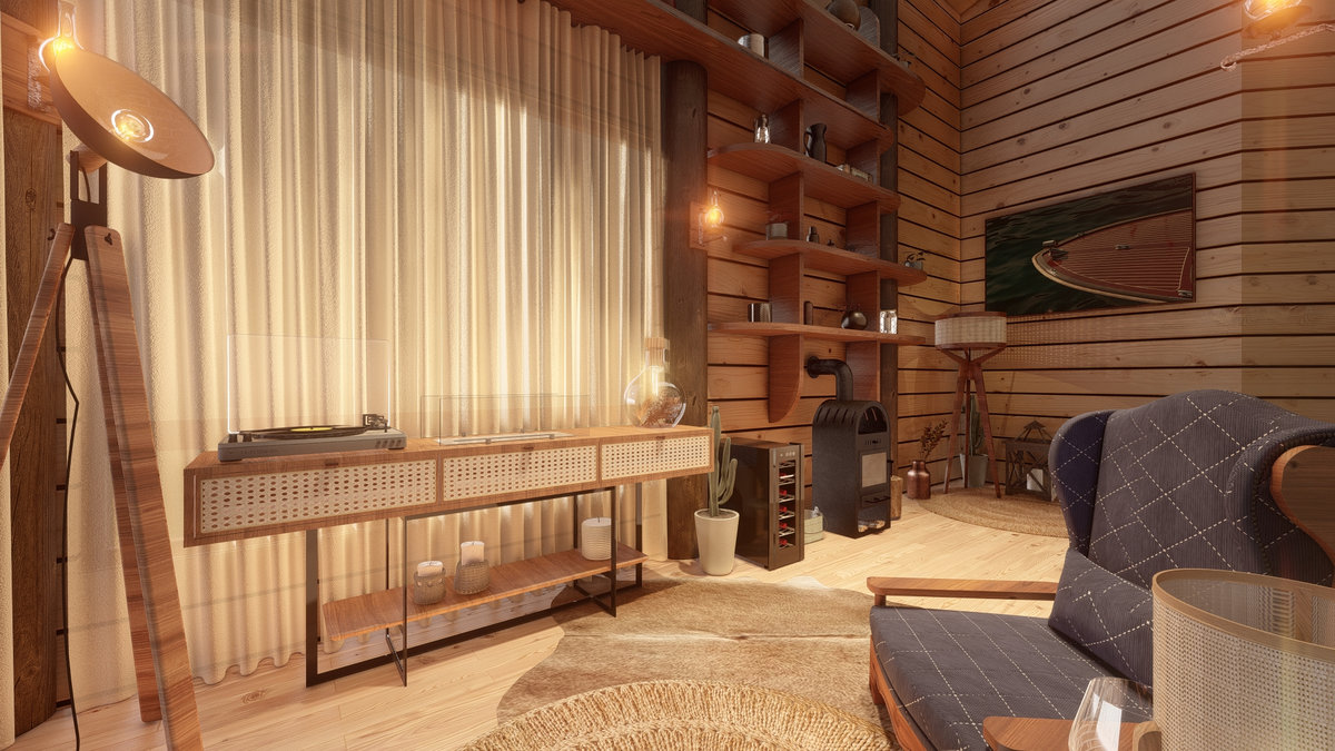 Arquitetura em pedra ferro e madeira aparente, com estrutura em vigas retangulares e forro contínuo em madeira entre elas. Uma composição que traduz rusticidade refinada, calor visual e a força dos materiais naturais em perfeita harmonia.