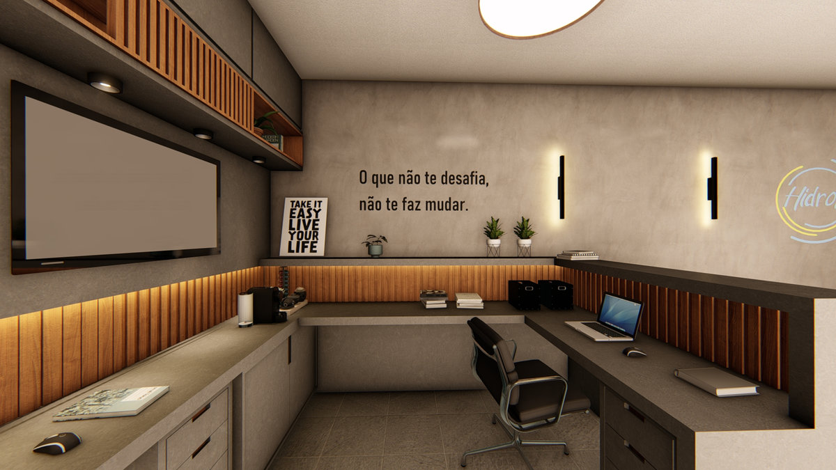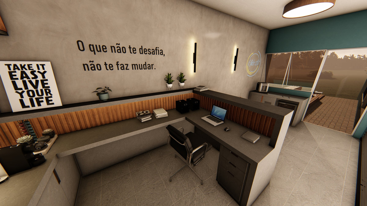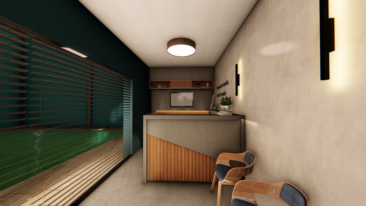 Uma recepção acolhedora e funcional, pensada para refletir o cuidado da marca com seus clientes. Materiais equilibrados e iluminação suave criam um ambiente convidativo e harmônico.